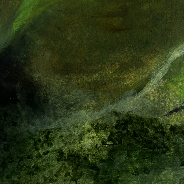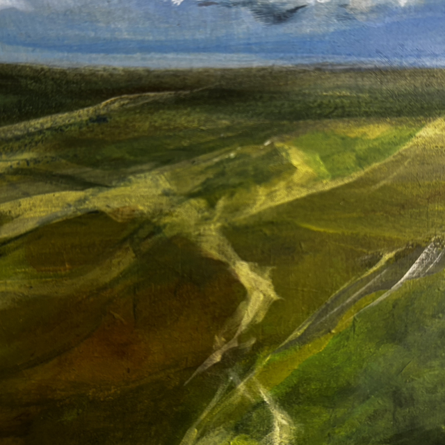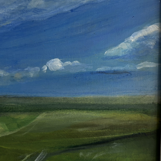 20 cm x 20 cm acrylic painting on wood panel with a white wood St Ives frame.