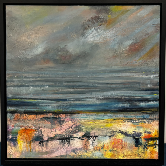 40 x 40 in a hand made black wooden floating frame
