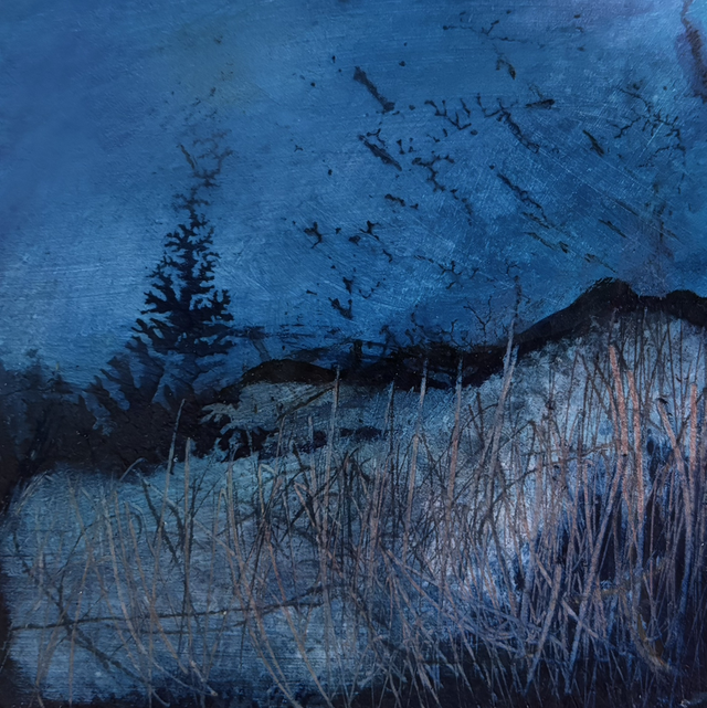 10 cm x 10 cm on wood panel with 21 cm x 21cm wood white frame.